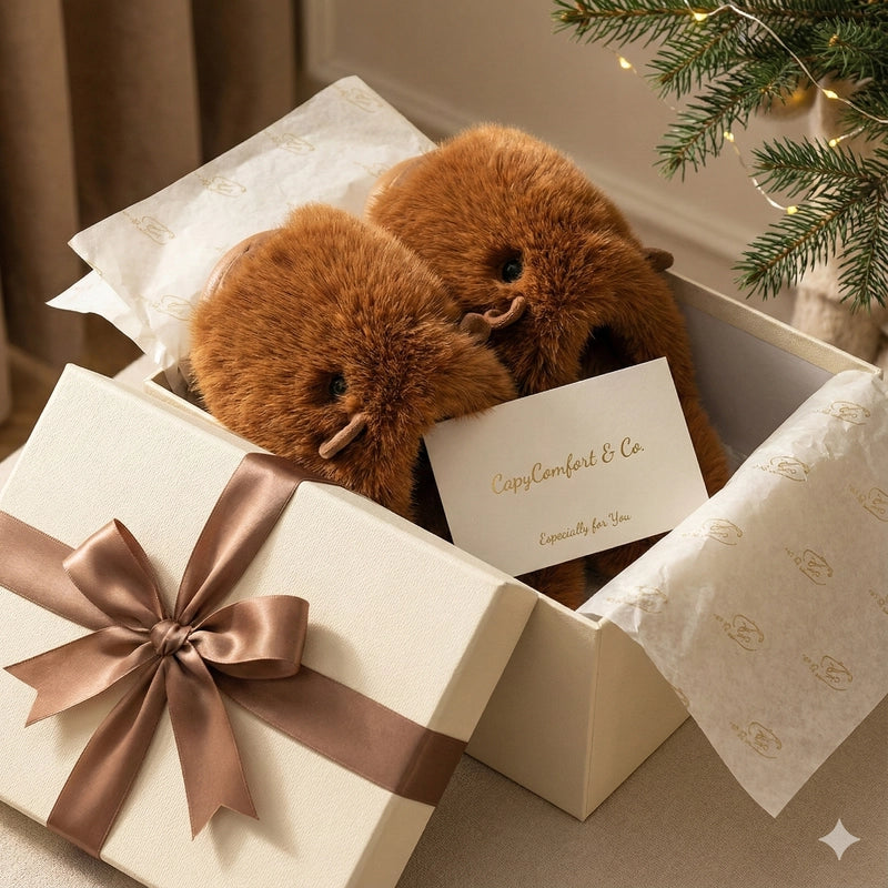 “Cutest unboxing ever! My feet were cheering the moment I put them on. So fluffy, so warm… best impulse gift from my husband!”